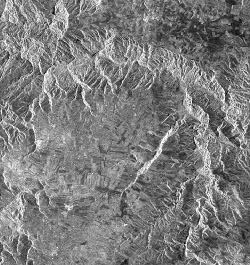 ...Bien que les radars à vue latérale puissent provoquer des effets comme le repliement et les ombrages, leur géométrie est précisément ce qui en fait des outils aussi utiles pour l'analyse de terrain. Ces effets, s'ils ne sont pas trop importants, peuvent même augmenter l'apparence du relief et des structures du terrain, faisant de l'imagerie radar, un excellent outil pour des applications telles que la cartographie topographique et l'identification des structures géologiques.