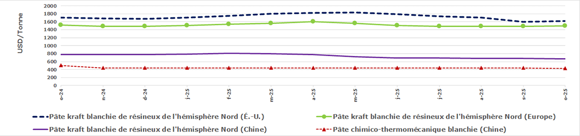 - les prix de la pâte aux États-Unis, en Europe et en Chine