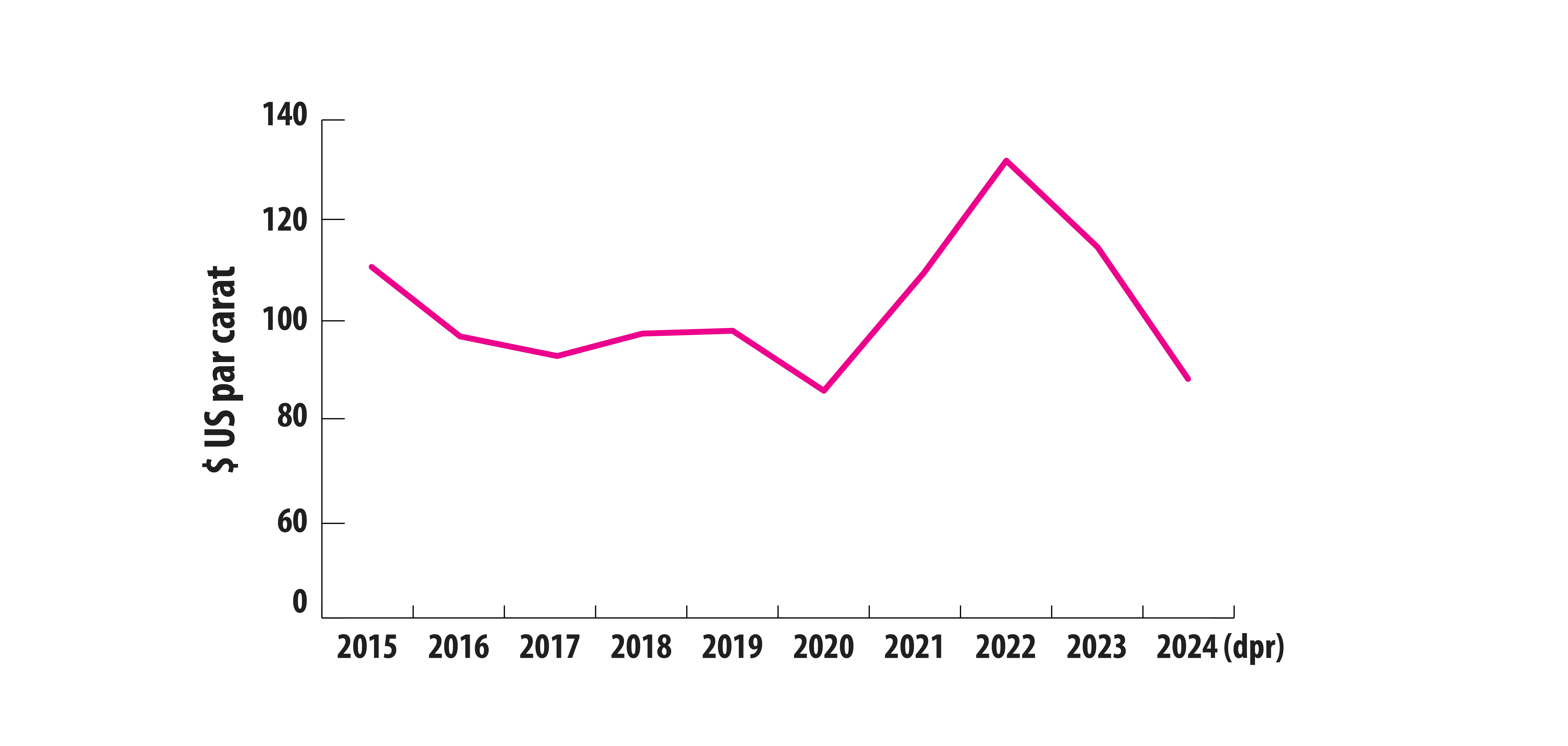 - Diamants bruts, valeur moyenne par carat de la production mondiale, de 2015 à 2024 (dpr)