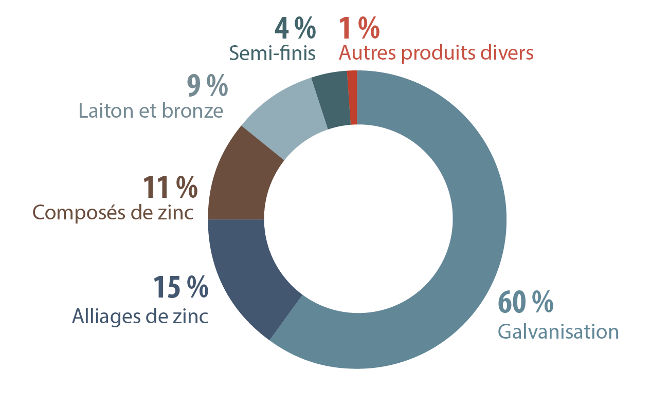 Utilisations du zinc à l’échelle mondiale, 2024