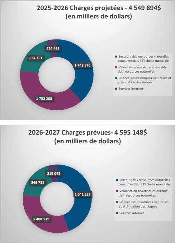 Charges projetées de l’exercice 2025-2026 et charges prévues de l’exercice 2026-2027 (en milliers de dollars)