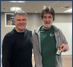 Robert Fleming (à droite), aux côtés de Danny Galarneau (directeur général du Centre de foresterie des Grands Lacs), la médaille en main.